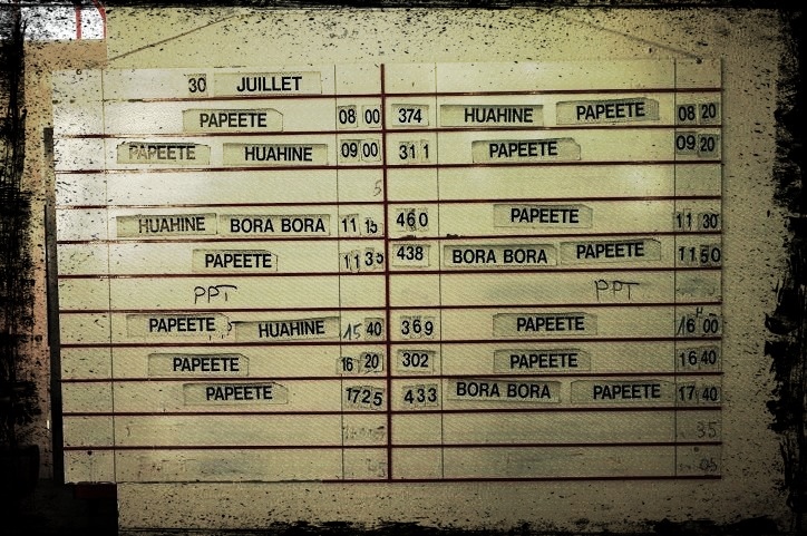Il fatto è che se non ci fosse scritto Bora Bora non riuscireste a convincermi che questa foto è stata fatta in Polinesia e che questo è il cartellone dell’aeroporto.